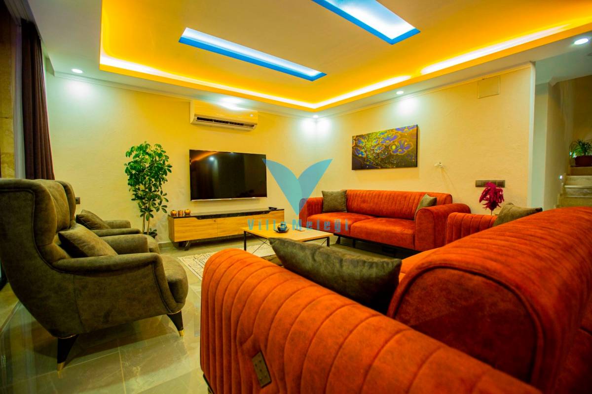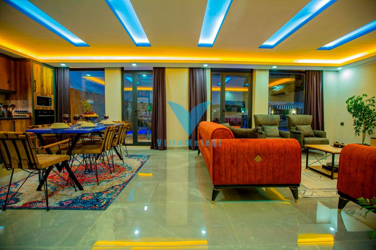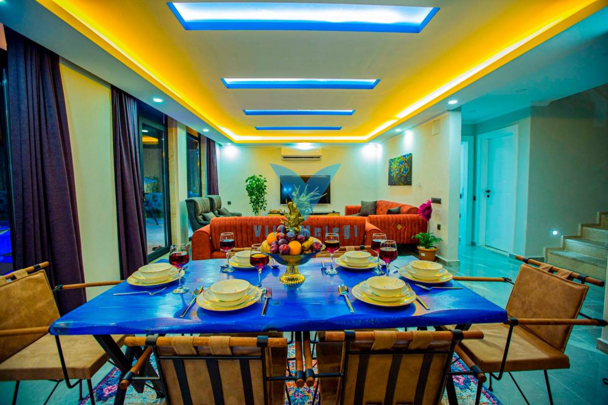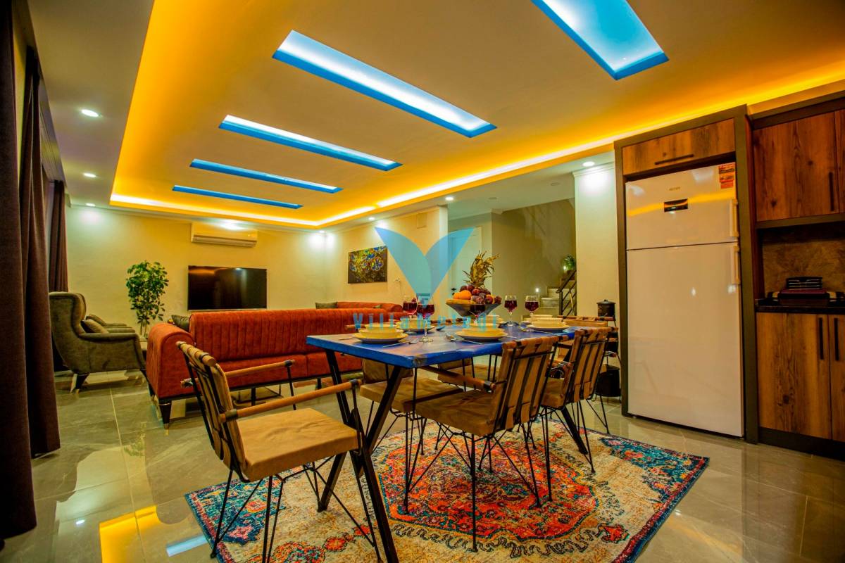 Salon: Özenle döşenmiş muhteşem açık mutfaklı salon, klima, modern koltuklar, Lcd tv, uydu alıcısı ve havuz-teras alanına çıkışı bulunmaktadır.
