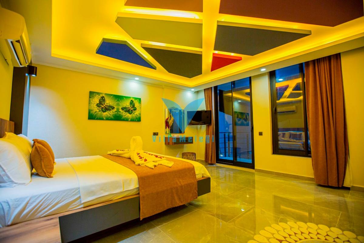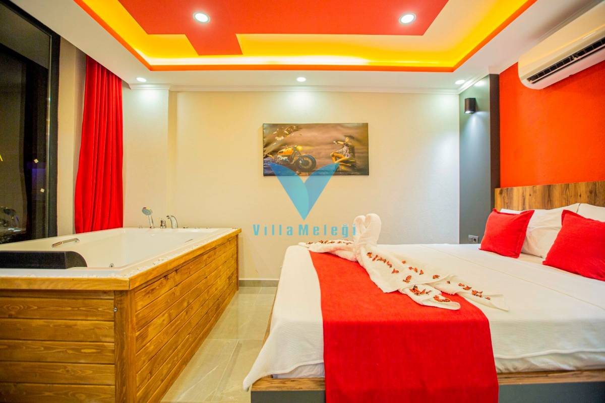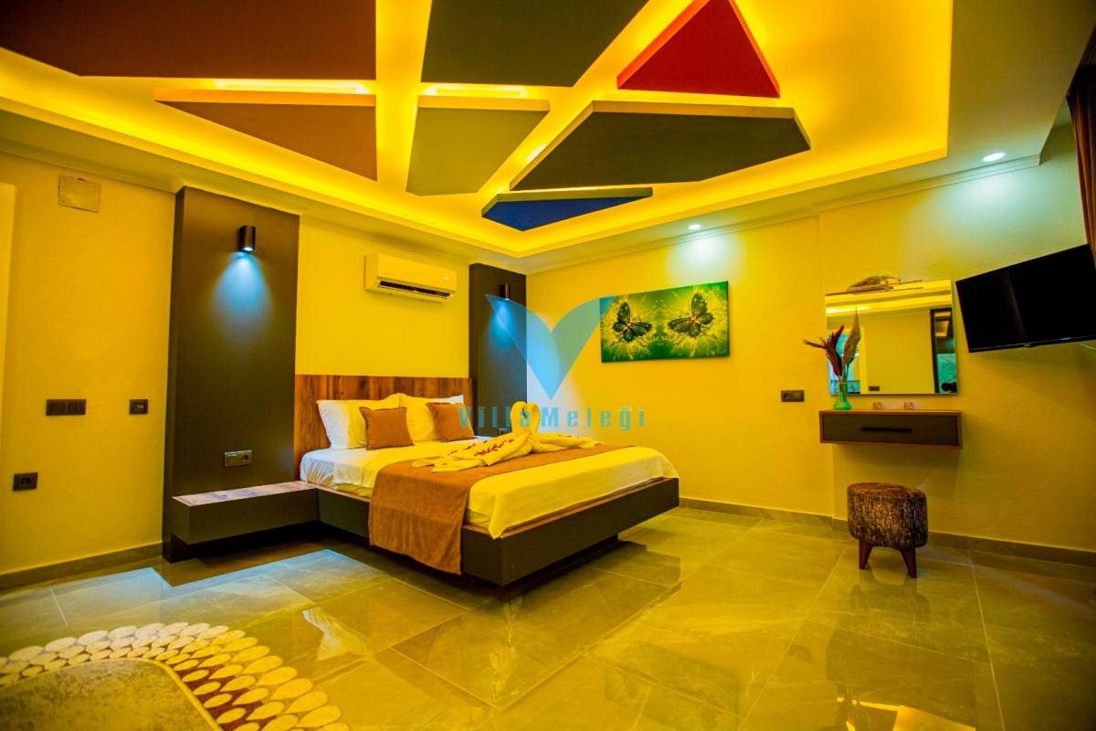 Not: Doğa ile iç içe konuma sahip olan tüm villalarımızda düzenli olarak ilaçlama yapılır. Buna rağmen çevrede haşere vb. bulunma ihtimali vardır. Havuzu korunaklı villalarımızda kesinlikle %100 görünmememe garantisi vermemekteyiz. Bu villalarımızda her zaman %5 sakınma payı mevcuttur. Sitemizde bulunan villa fotoğraflarının, görüntüyü ekrana sığdırmak için ’Geniş Açılı Lens’ ile çekilmektedir. Bu sebeple resimlerdeki objeler, gerçek boyutlarından daha büyük veya küçük görünebilmekte.