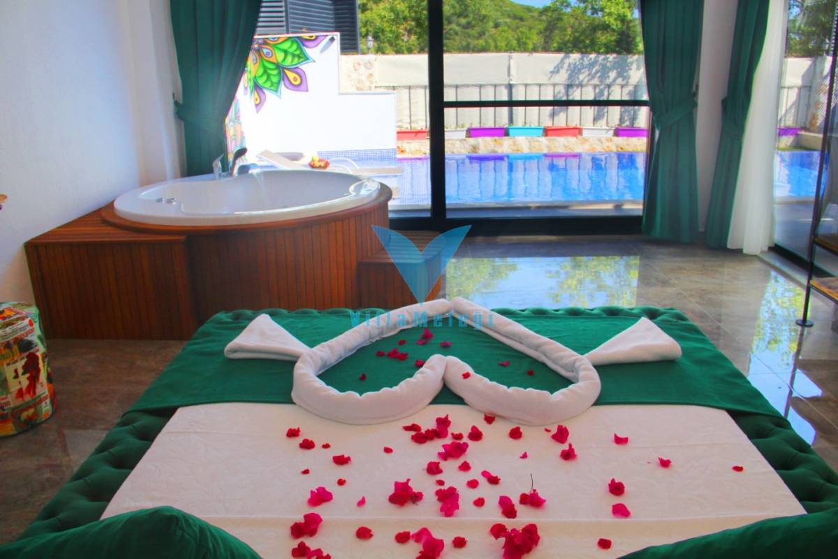 Kalkan Üzümlü'de bulunan bu balayı villası, size sakinlik, romantizm ve lüksü bir arada sunar, unutulmaz bir tatil deneyimi yaşamanızı sağlar.