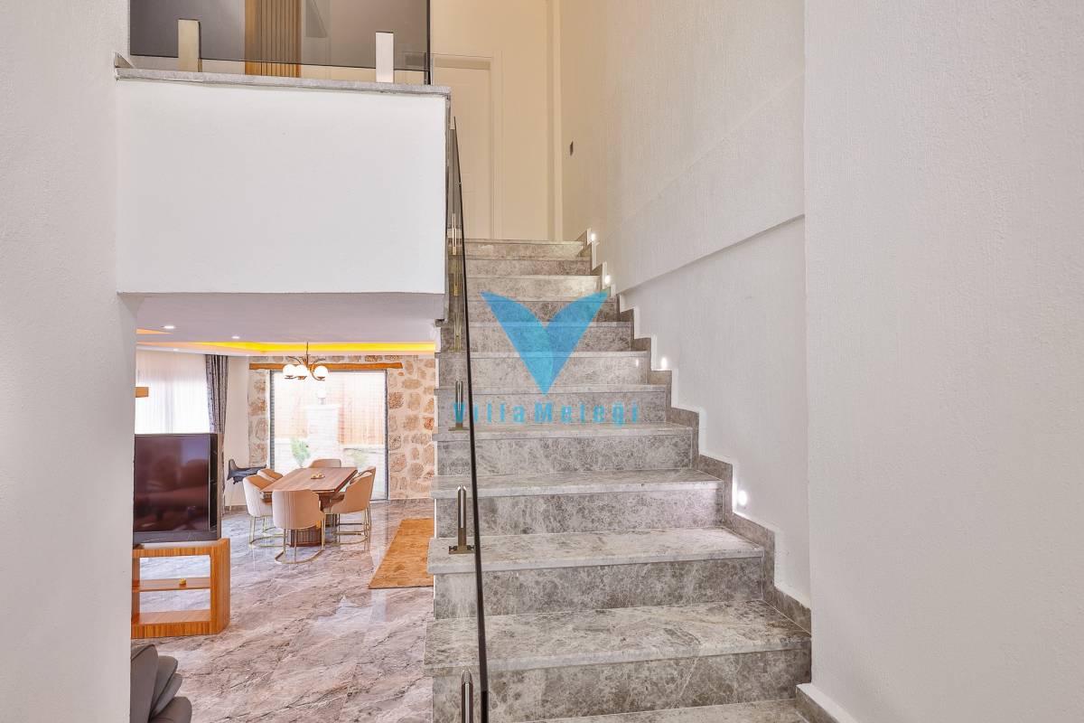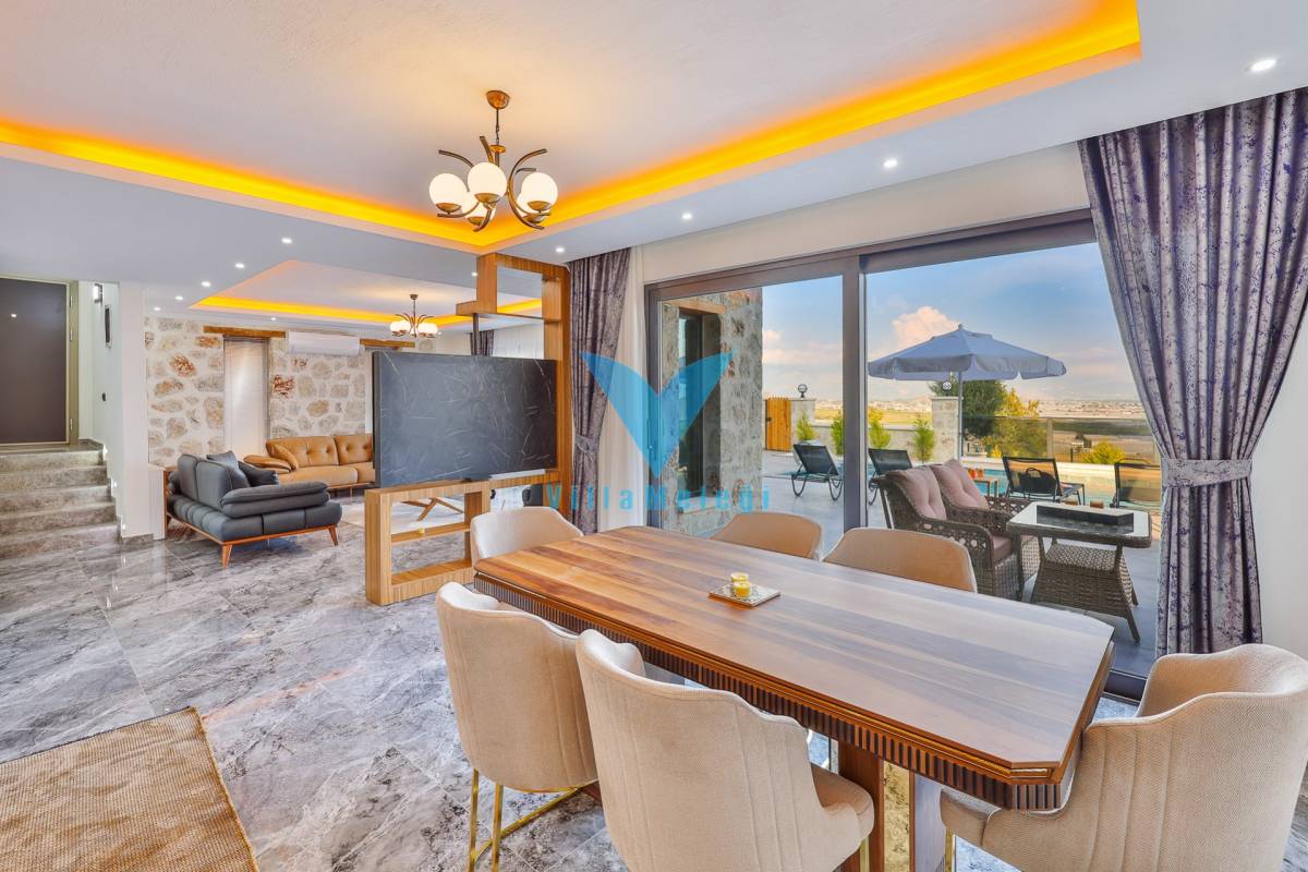 Özel Havuz, Çocuk Havuzu, Özel Yemek Odası da yer alan villamızın iç mekanı da havuz ve bahçe alanı kadar ferah ve lüks detaylara sahip olarak dizayn edilmiş olup yatak odalarında geniş jakuziler, her iki odaya özel banyo ve tuvalet olduğu gibi ayrıca salonda bir tuvalet daha ortak kullanım olarak kullanımınızda olacaktır.