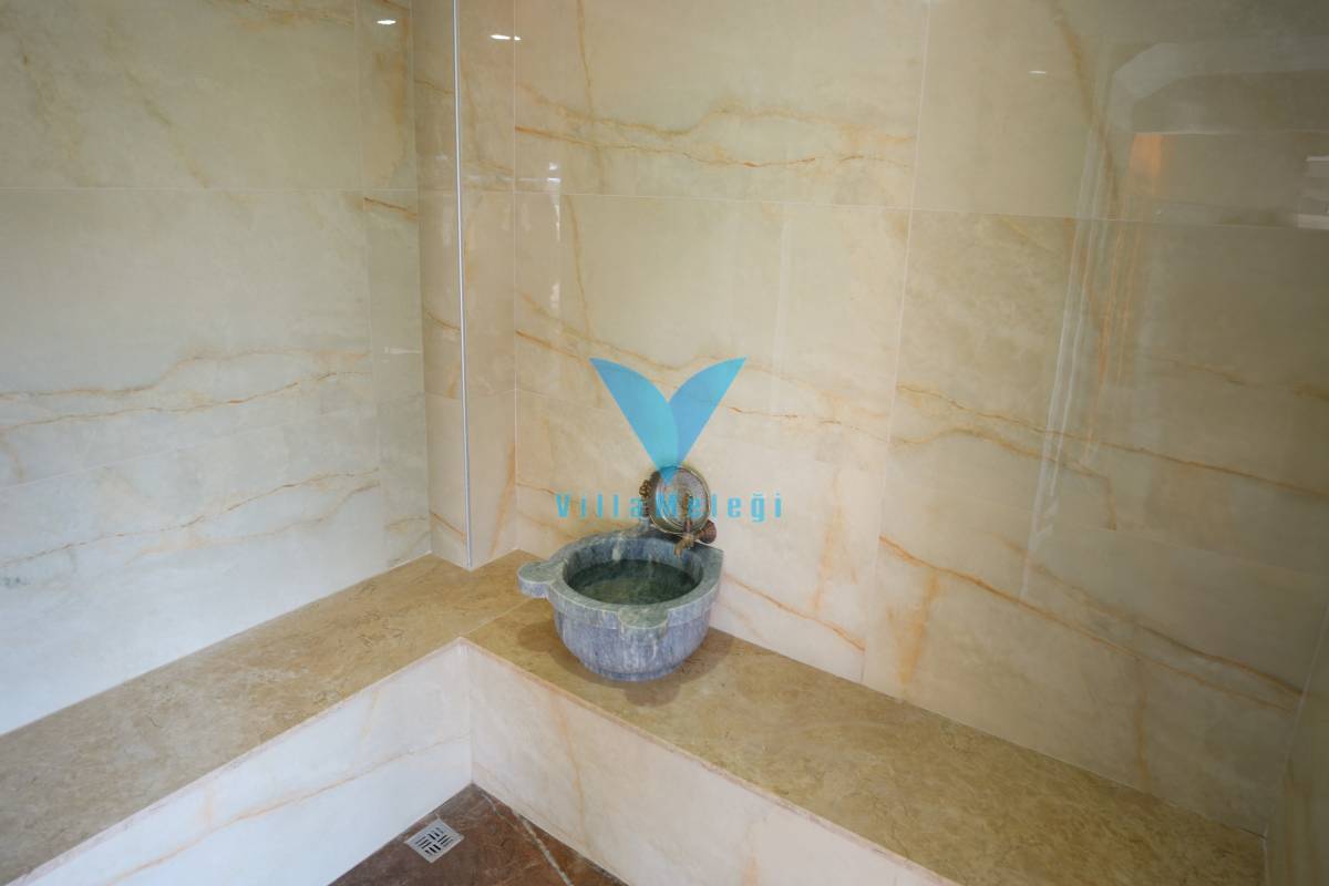 Toplamda 4 yatak odası bulunan villamızın 4 adet banyosu ve 2 adet ayrıca WC mevcuttur. Tüm yatak odalarında bulunan ebeveyn banyosu sayesinde misafirlerimiz rahatlıkla konaklayabileceklerdir. Villamızda zemin katında katında Türk hamamı, sauna, ısıtmalı iç havuz ve WC yer almaktadır. 1.katta ise açık mutfak-salon, TV, klima ve WC yer alırken, 2. katta birinci ve ikinci yatak odası yer alır. Birinci ve ikinci yatak odalarında birer adet çift kişilik yatak, klima, TV, WC-Duş ve jakuzi bulunmaktadır. Çatı katında yer alan üçüncü ve dördüncü yatak odalarında ise ikişer adet tek kişilik yatak, klima ve WC-Duş yer almaktadır.