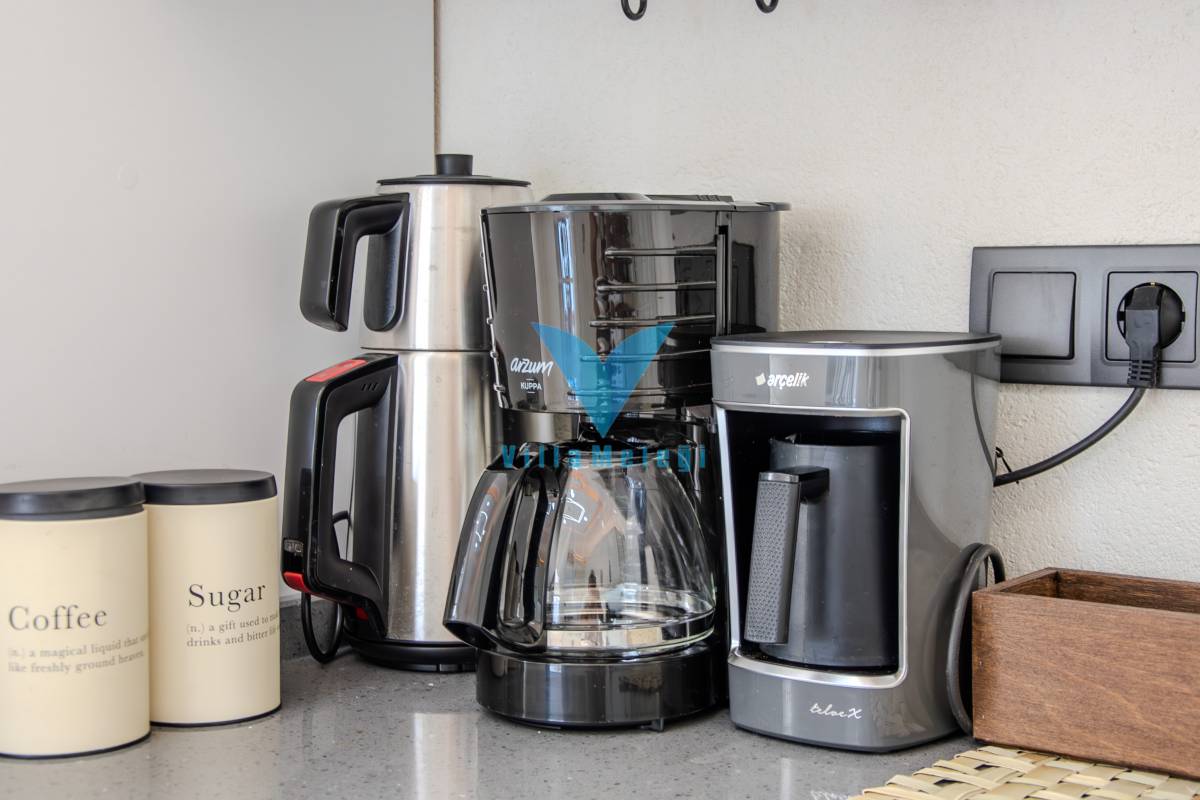 Modern Amerikan mutfak, buzdolabı, bulaşık makinesi, çamaşır makinesi, ankastre fırın, tost makinesi, kahve makinesi, mikrodalga fırın, çaycı, yemek masası, ankastre 4’lü ocak, elektrikli su ısıtıcısı(kettle), 6 kişilik yemek takımı, çeşitli mutfak araç gereçleri bulunmaktadır.