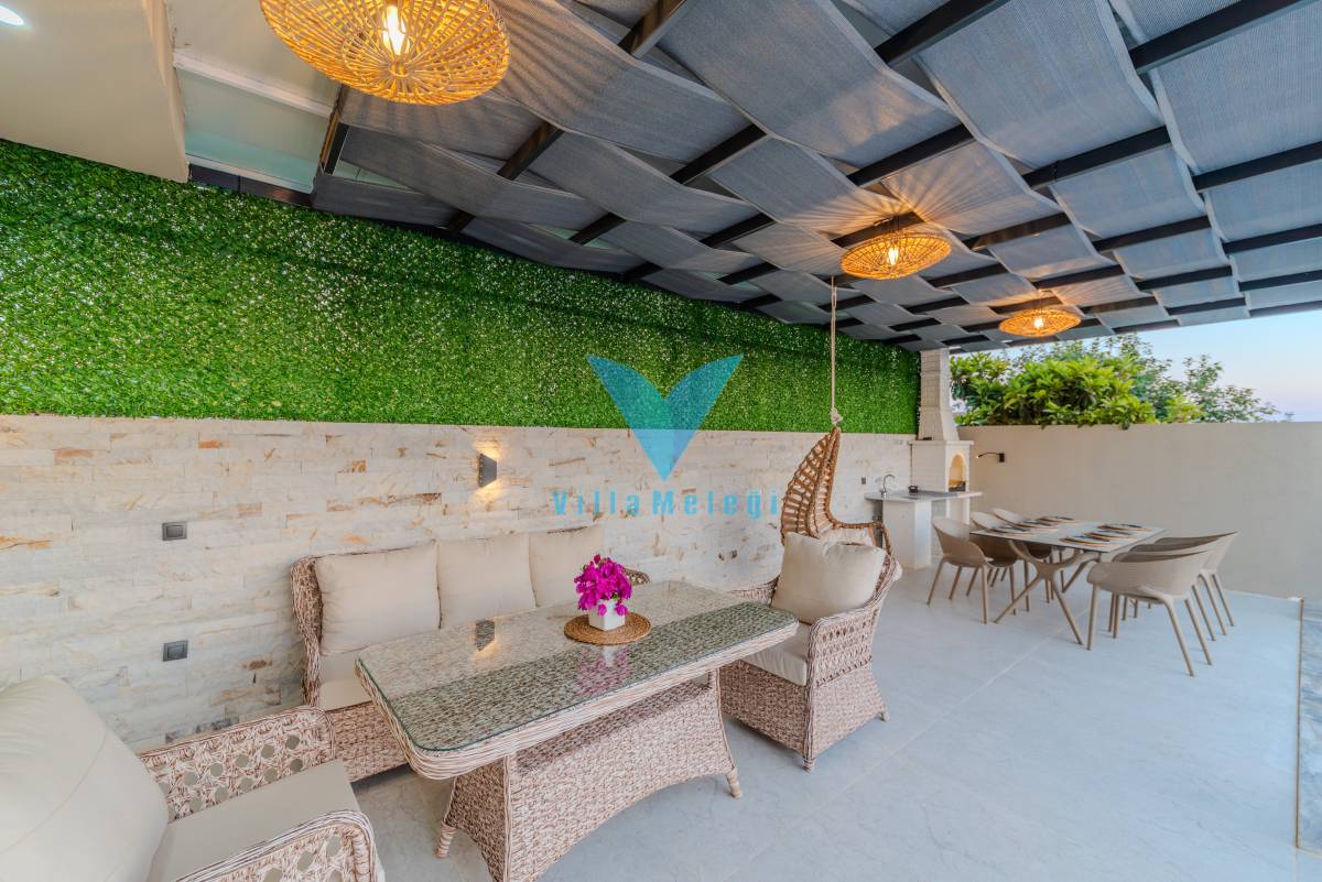 Havuz terasında; korunaklı özel yüzme havuzu, şezlong, şemsiye, salıncak, yemek masası, bahçe oturma grubu, barbekü bulunmaktadır.