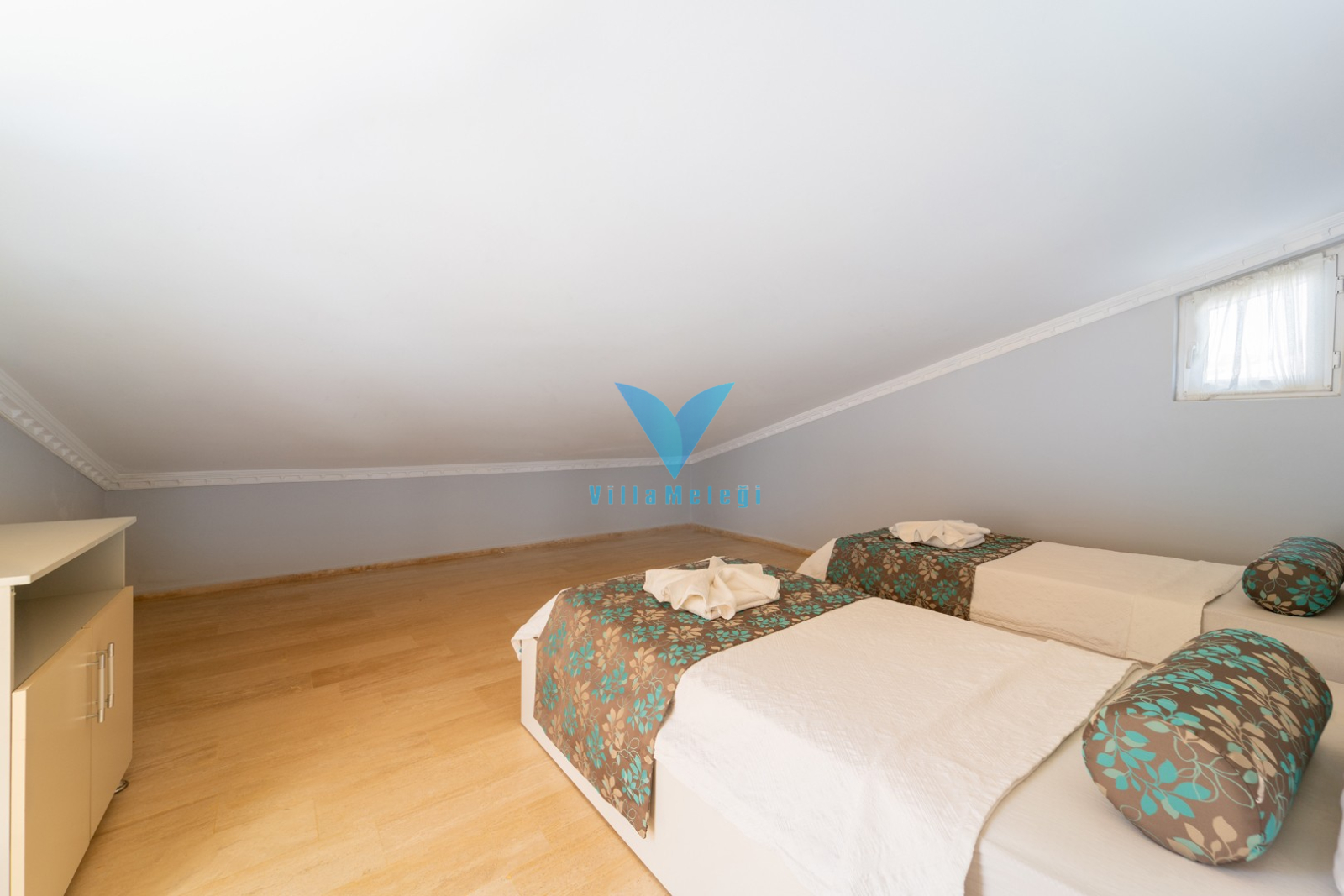 Villamız standartların üzerinde kullanıma sunulmuş olup özel yüzme havuzu bulunmaktadır. Bu muhteşem tatil villamızda 4 tane yatak odası bulunmaktadır ve odaların hepsinden muhteşem deniz manzarası seyredilebilmektedir. Tüm yatak odalarında klima bulunan villamızın iki tane yatak odasında ebeveyn banyosu vardır. Bu banyolar dahil toplamda 4 adet banyosu bulunmaktadır. Bir banyosunda jakuzi de mevcuttur. Villamızda: Zemin katta Amerikan mutfak+salon, WC+Lavabo; Üst katta iki suit yatak odası biri jakuzili, Teras katta ortak kulanım banyolu 2 yatak odası ve harika manzaraya sahip teras bulunmaktadır. Kapalı otopark, Kablosuz internet bağlantısı vardır. Villamız 8 kişiliktir, size temiz teslim edilip, temiz nevresim ve havlu takımı bulunmaktadır. Günlük kullanım için her türlü eşyası bulunan villamızda tatiliniz boyunca elektrik, su, mutfak tüpü, havuz ve bahçe bakım giderleri fiyatlara dahildir. Sessiz sakin bir tatil yapmak isteyen misafirlerimize villamızı kesinlikle tavsiye ederiz.