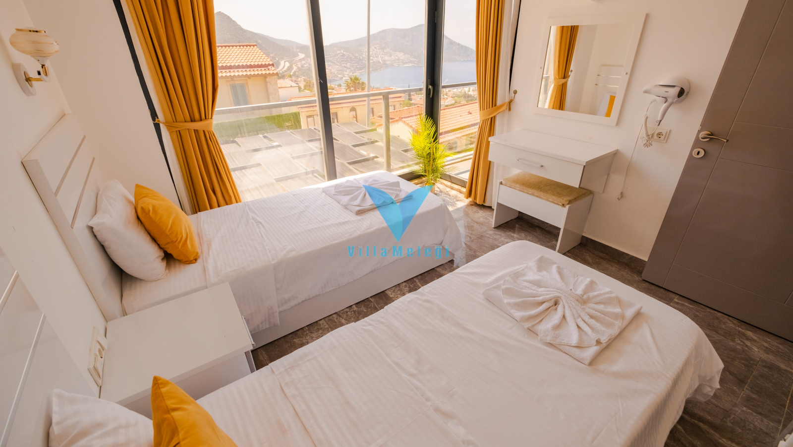 5. Yatak Odası : 2 adet tek kişilik yatak, Komidin, Makyaj masası, Klima, Elbise dolabı, Banyo bulunmaktadır.