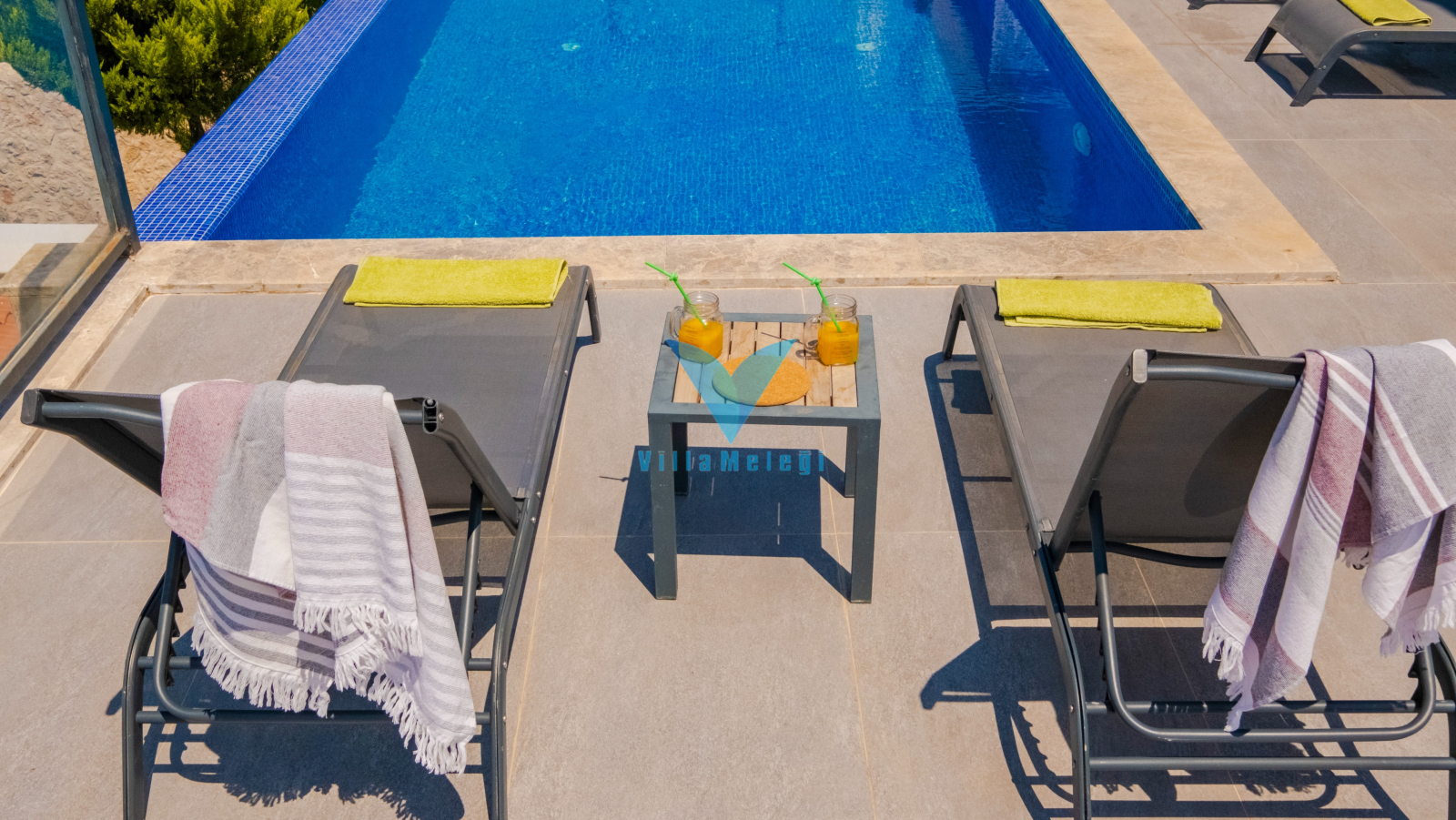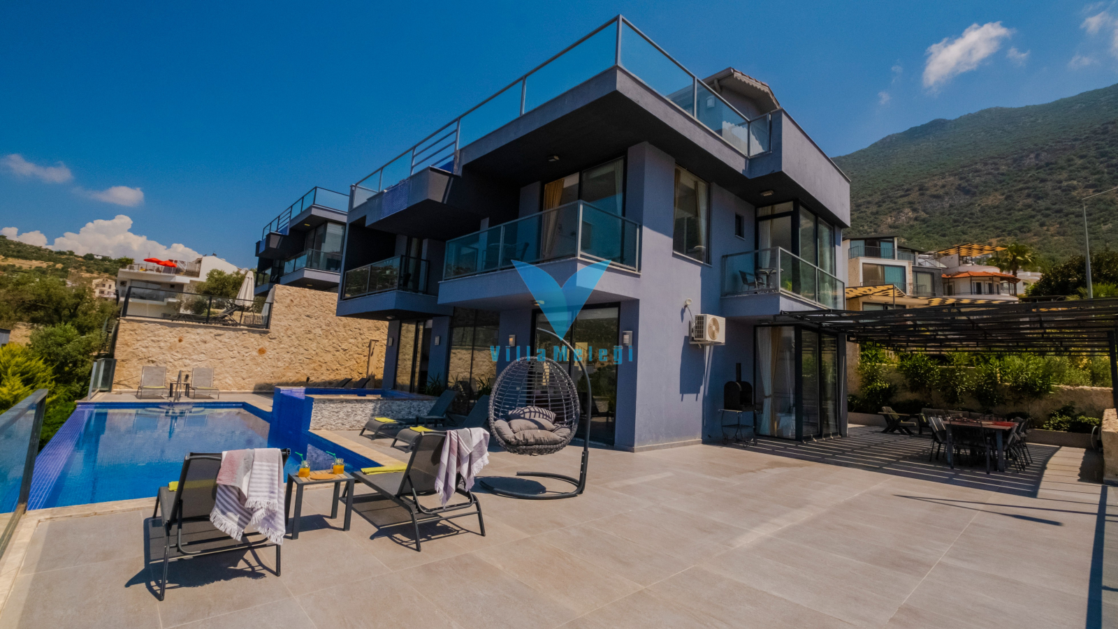 Havuz ve Bahçe :  Özel yüzme havuzu, şezlong, yemek masası, şemsiye, oturma grubu, barbekü bulunmaktadır.