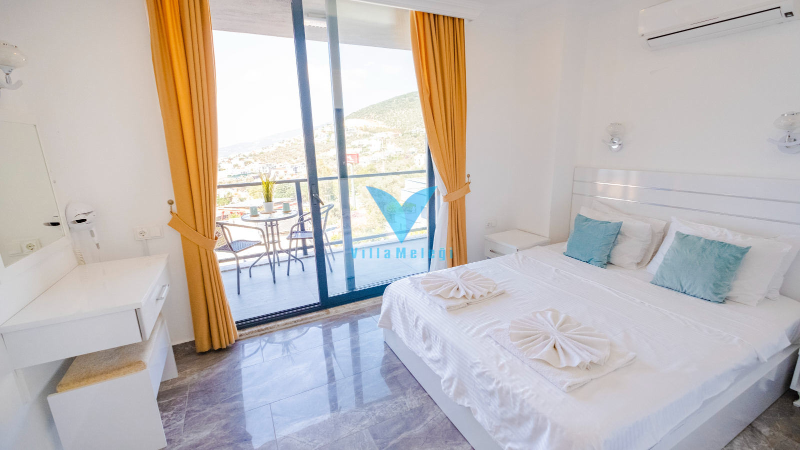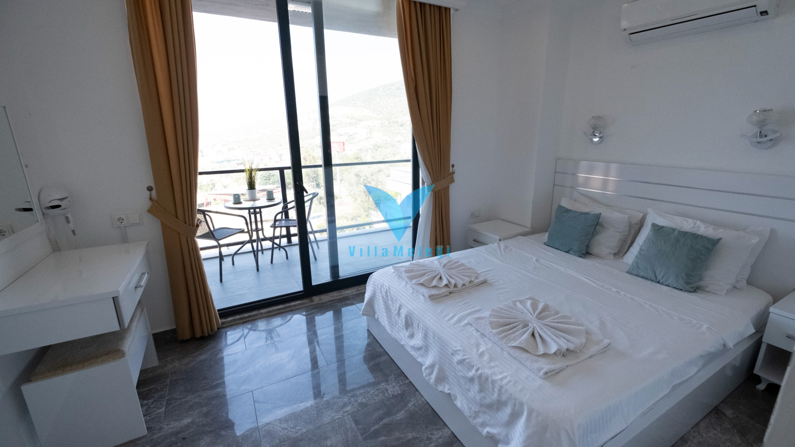 2. Yatak Odası : Çift kişilik yatak, Komidin, Klima, Elbise dolabı, Banyo, Balkona çıkış bulunmaktadır.