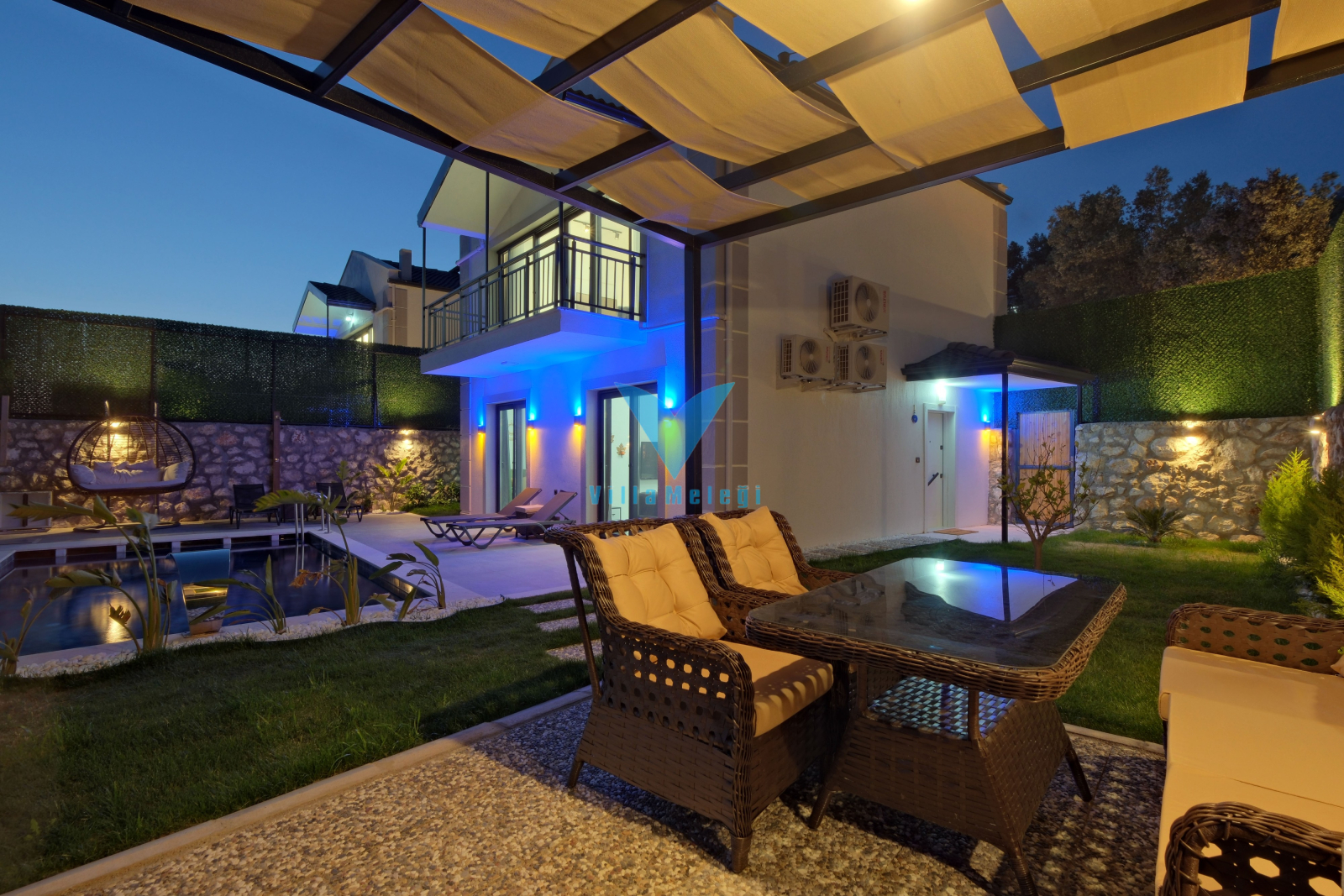 Toplam 2 yatak odasından oluşmuş, 4 kişi konaklama kapasitesine sahiptir. Çekirdek aileler ve arkadaş grupları ve balayı çiftleri için oldukça idealdir. Oldukça şık ve modern bir şekilde döşenmiş olan villamızda misafirlerimiz için her şey düşünülmüştür. Havuz terasında bulunan şezlonglarda güneşlenebilir, bahçe masasında muhteşem yemekler yiyebilir, salıncakta sallanıp keyifli dakikalar geçirebilirsiniz.