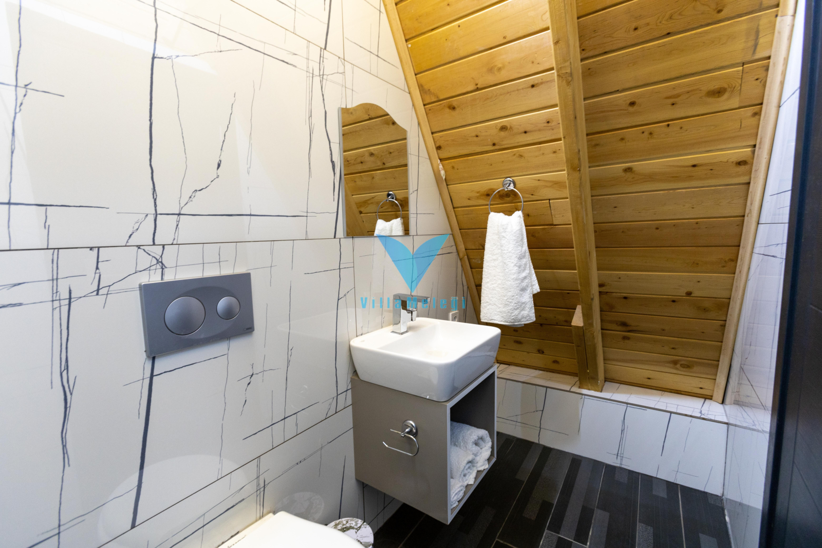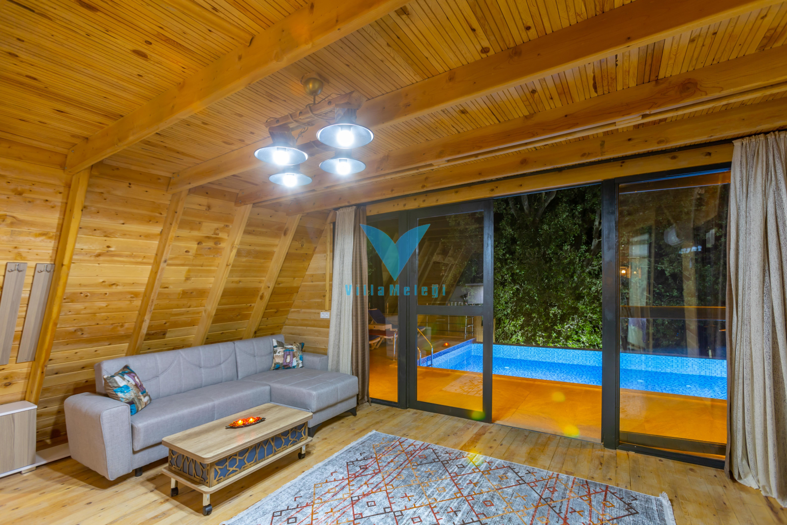 Villamızın içerisinde iki adet yatak odası ve iki adet banyo bulunmaktadır. Birinci yatak odası asma katta yer alır ve içerisinde çift kişilik yatak, klima, banyo ve terasında jakuzi; İkinci odada ise iki tek kişilik yatak, klima ve banyo yer almaktadır. Salon içerisinde mutfak, oturma grubu, klima ve televizyon mevcuttur.