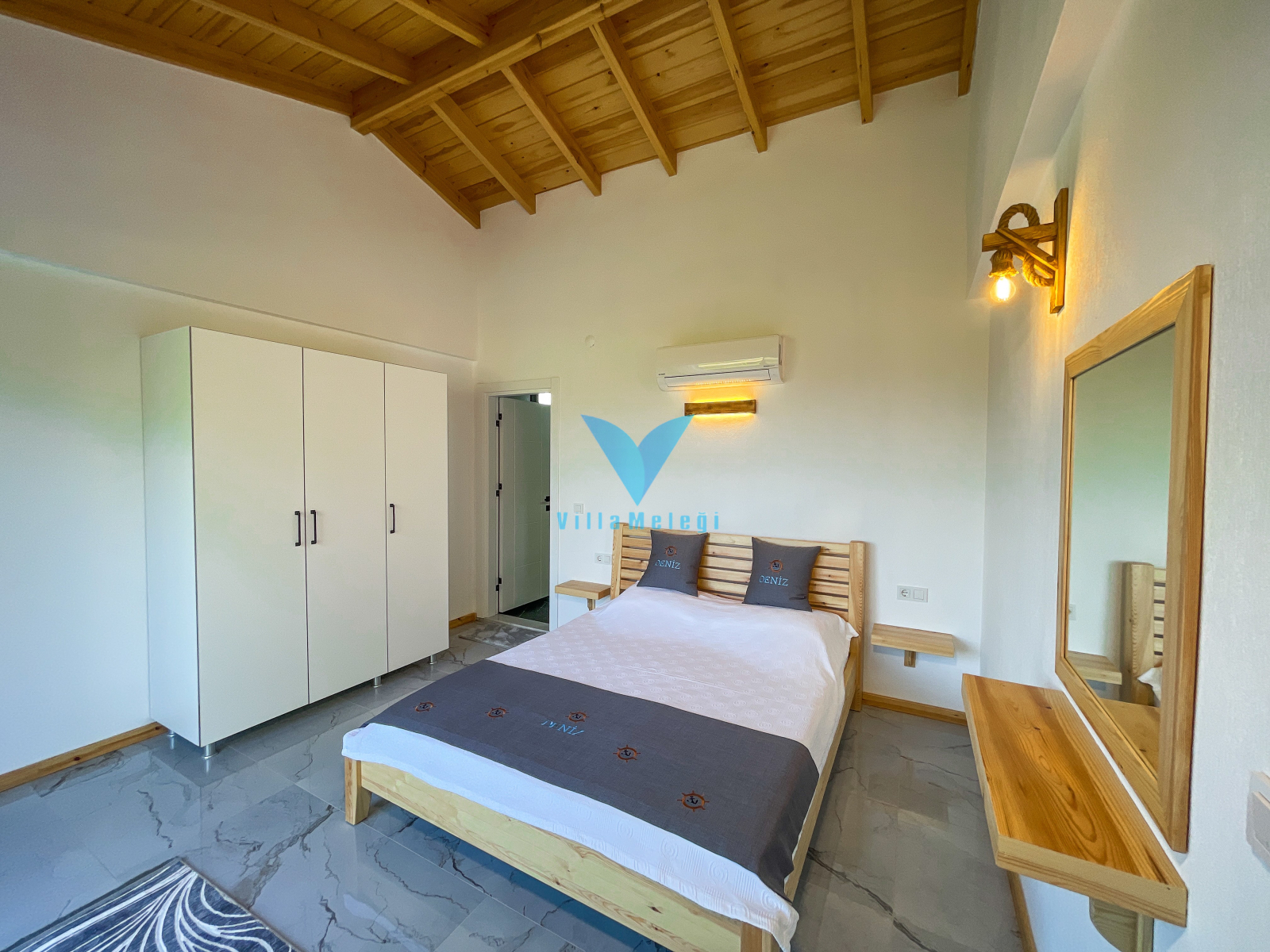Villa tek katlı yapıya sahip olup 4 kişi kapasitelidir. Villanın içerisinde salon, açık mutfak, TV, klima bir adet yatak odası yer almaktadır. Yatak odasında bir adet çift kişilik yatak, ebeveyn banyosu ve klima mevcuttur. Ayrıca salonda bir kişilik yatma imkanı sağlayan bir adet L koltuk ve ek yatak bulunmaktadır. Villanın pencerelerinin büyük ve geniş olması ferah bir iç mekan sunar.