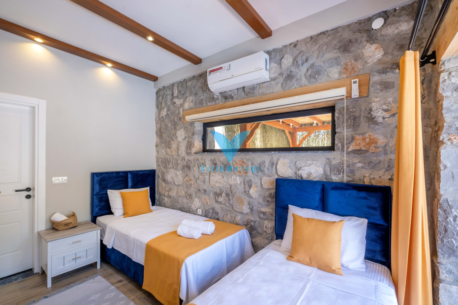 Villamızın içerisinde 2 adet yatak odası mevcuttur. Birinci yatak odası içerisinde bir adet çift kişilik yatak ebeveyn banyosu, jakuzi ve klima yer almaktadır. İkinci yatak odasında ise iki adet tek kişilik yatak, ebeveyn banyosu ve klima mevcuttur. Ortak alanda ise açık mutfak - salon, klima ve TV bulunmaktadır. Modern ve şık dizaynı ile siz misafirlerimize unutulmaz bir tatil fırsatı sunan Villa 2858 toplamda 4 kişi kapasiteli villamızdır.