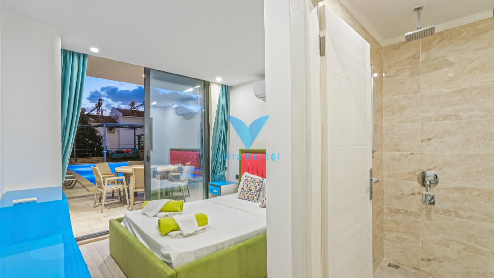Villanın 4 geniş ve konforlu yatak odası bulunmaktadır. Özel olarak tasarlanmış teras katındaki yatak odasında, muhteşem manzaranın keyfini çıkarabileceğiniz bir jakuzi yer almaktadır. Burada güneşin batışını izlerken hem rahatlayabilir hem de eşsiz bir romantik atmosferin tadını çıkarabilirsiniz.