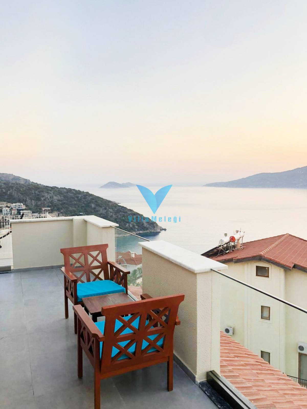 Kalkan Kışla'da bulunan 5+ yatak odalı müstakil villa, harika deniz manzarası ve ferahlık sunmaktadır. Özel banyolu ve mobilyalı villa