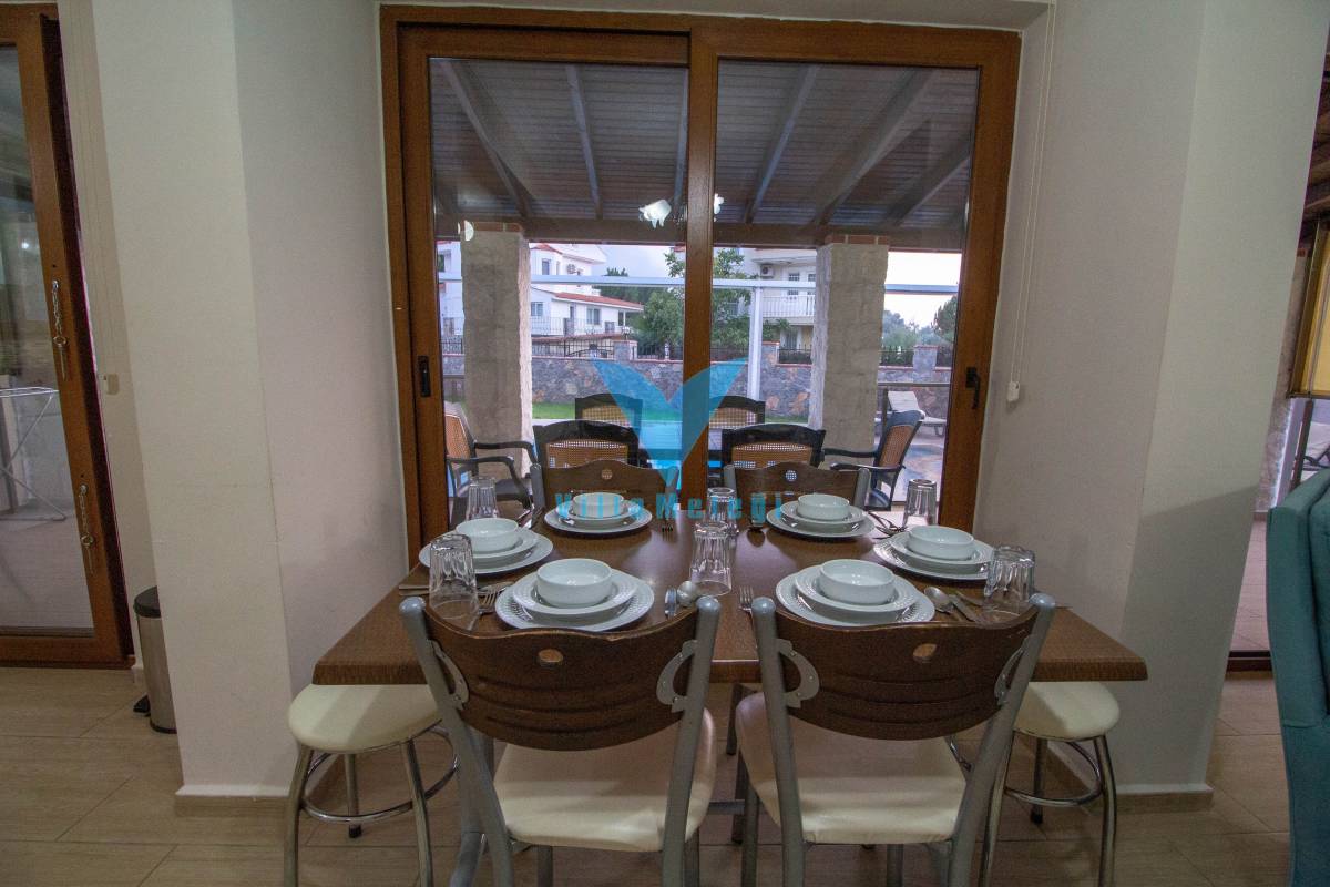 Detayları : Oturma grubu, LCD TV, Klima, 6 kişilik yemek masası, havuz terasına geçiş ve WC/Lavabo bulunmaktadır