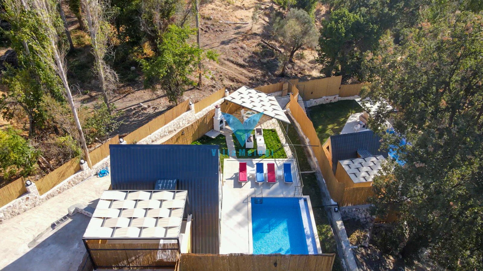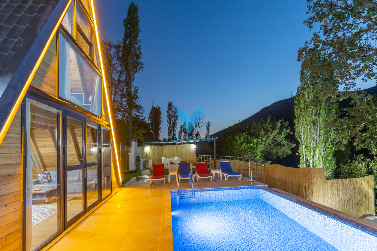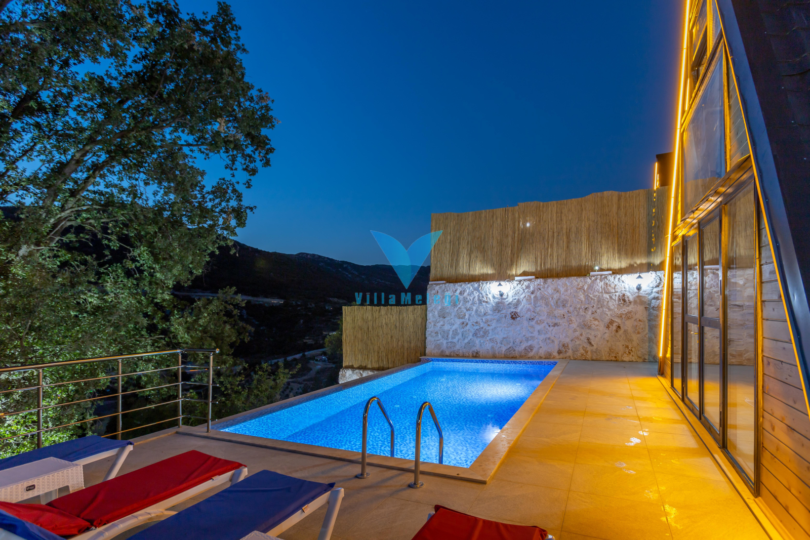 Villa VM 2825, Kalkan Sarıbelen mevkiinde bir arazi üzerinde yer alan, ahşap üçgen mimariye sahip, bire bir aynı iç dizaynı bulunan ve yan yana konumlanan şirin tatil evlerimizdir. Evlerimizin her birinin kendine ait özel yüzme havuzu bulunmaktadır ve bu havuzlar dışarıya karşı tam korunaklıdır.
