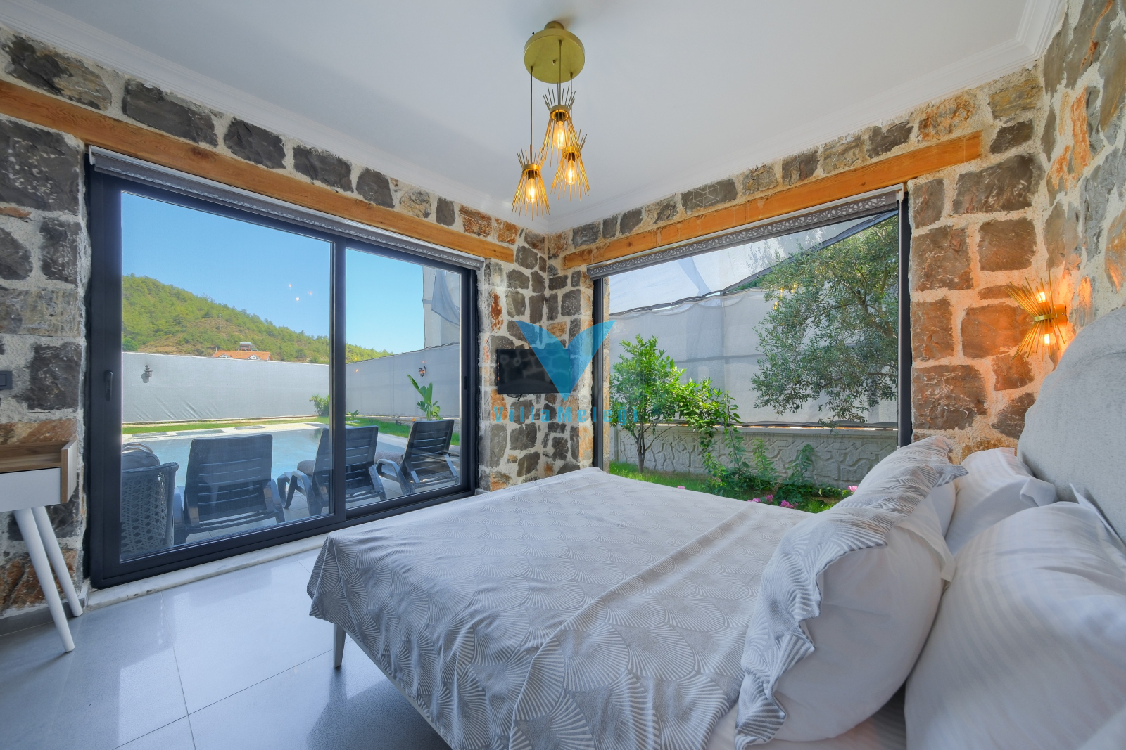 Doğa içerisinde yer alan 4 kişilik villamızın birinci yatak odasında 1 adet çift kişilik yatak, WC-Duş, TV ve klima bulunmaktadır. İkinci yatak odasında 1 adet çift kişilik yatak, WC-Duş, jakuzi, TV ve klima bulunmaktadır. Ortak alanda açık mutfak-salon, WC, klima ve TV mevcuttur.