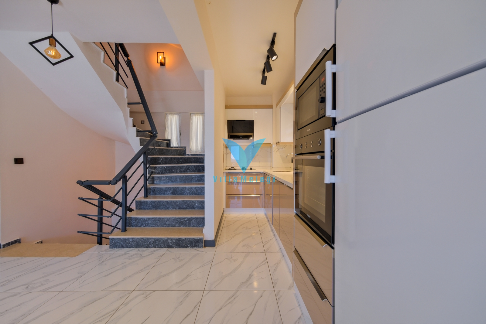 Mutfak : Modern Amerikan mutfakta buzdolabı, bulaşık makinası,fırın,4'lü ocak, mikrodalga fırın, kettle, 8 kişilik yemek masası, yemek takımları, çatal ve bıçak takımları, tencere ve tava takımları, bardaklar bulunmaktadır